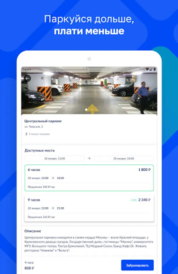 Park profitably and conveniently with Parkly. Reserve and pay for parking in the underground parking lots of the center of Moscow from your phone with a benefit of up to 50%!