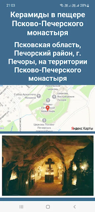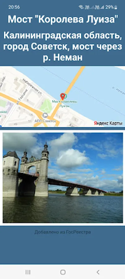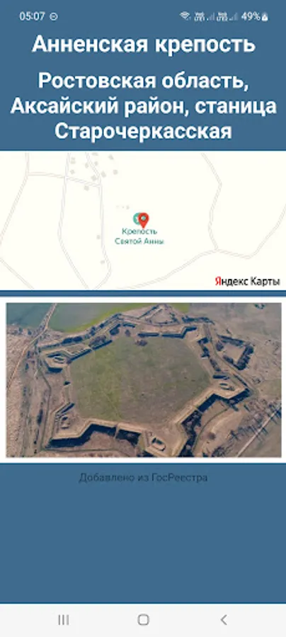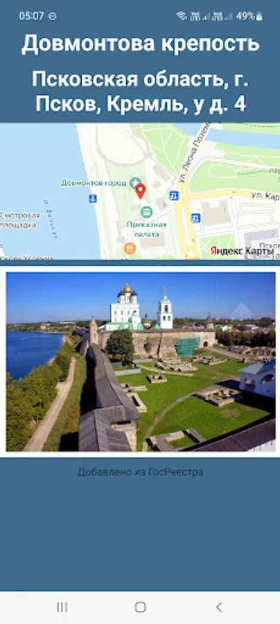 Contains more than 100,000 cultural heritage sites (monuments of history and culture), map marks, photographs, address.