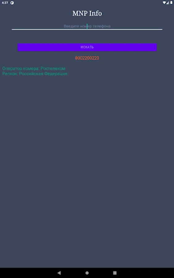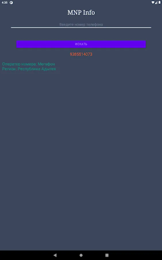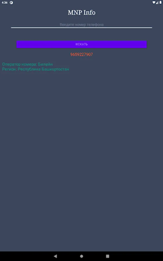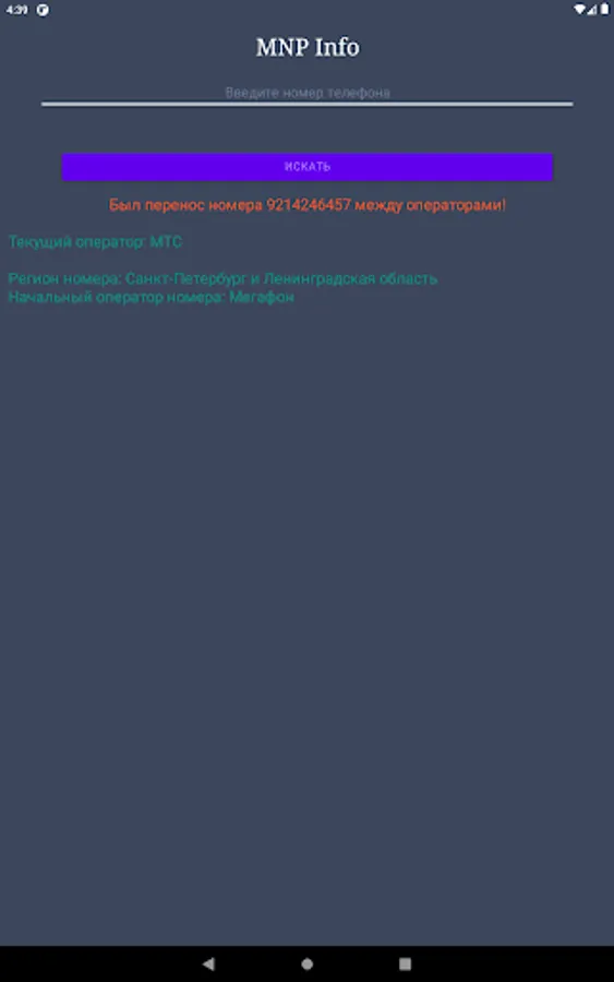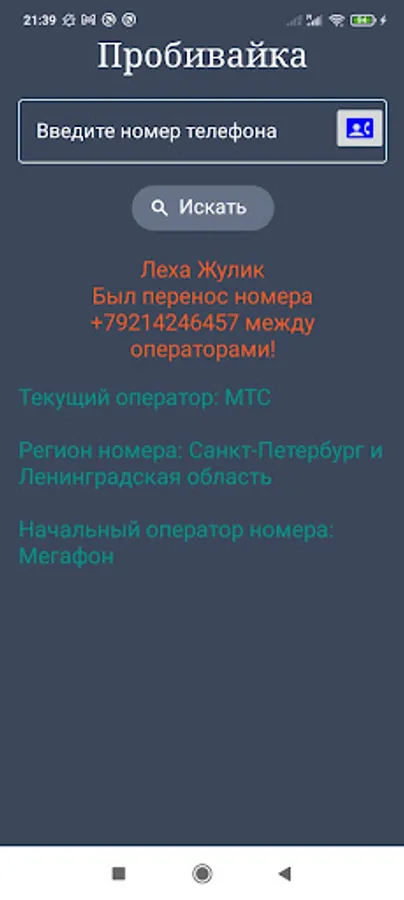 When a subscriber changes mobile operator (MNP), the application will show the first owner of the phone number and the current owner of the phone number, as well as the region.
