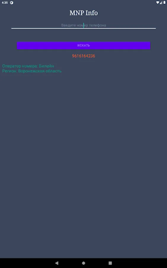 Allows you to determine (whose number) - by the phone number of the Russian telecom operator. The region is defined at the same time.