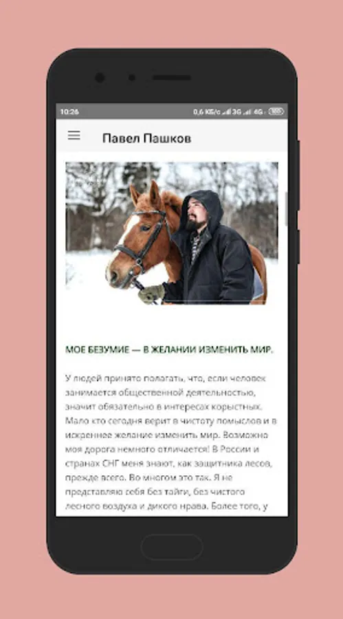 The official app of the Russian traveler, writer Pavel Pashkov. Latest news, important notes, reports from expeditions. Through the application you can visit all the projects of Pavel Pashkov, learn about the problems of the Russian Taiga, and also contact the author.