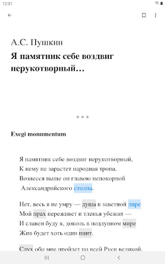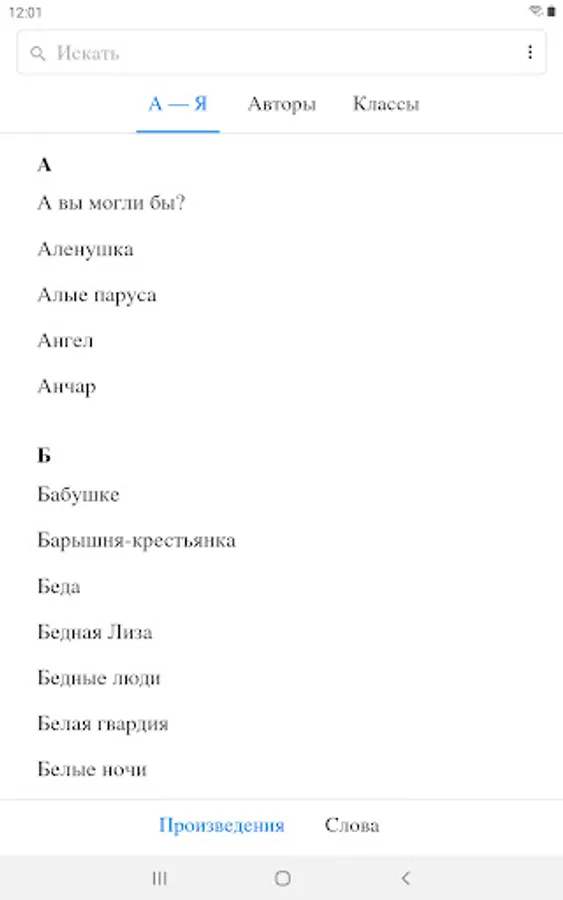 The application is an electronic reader of texts from the school curriculum in literature and an integrated dictionary with detailed interpretations of rare and difficult words.