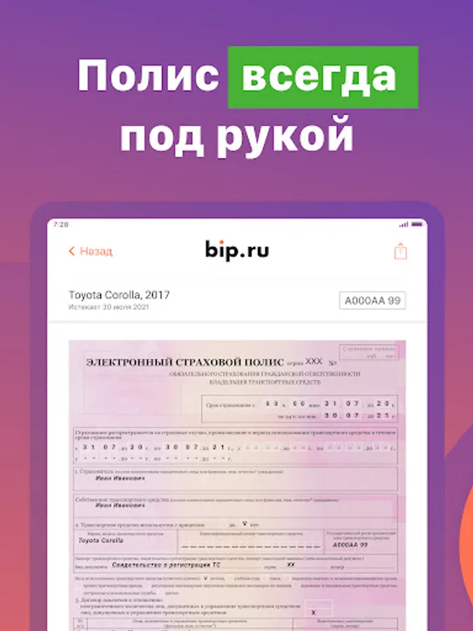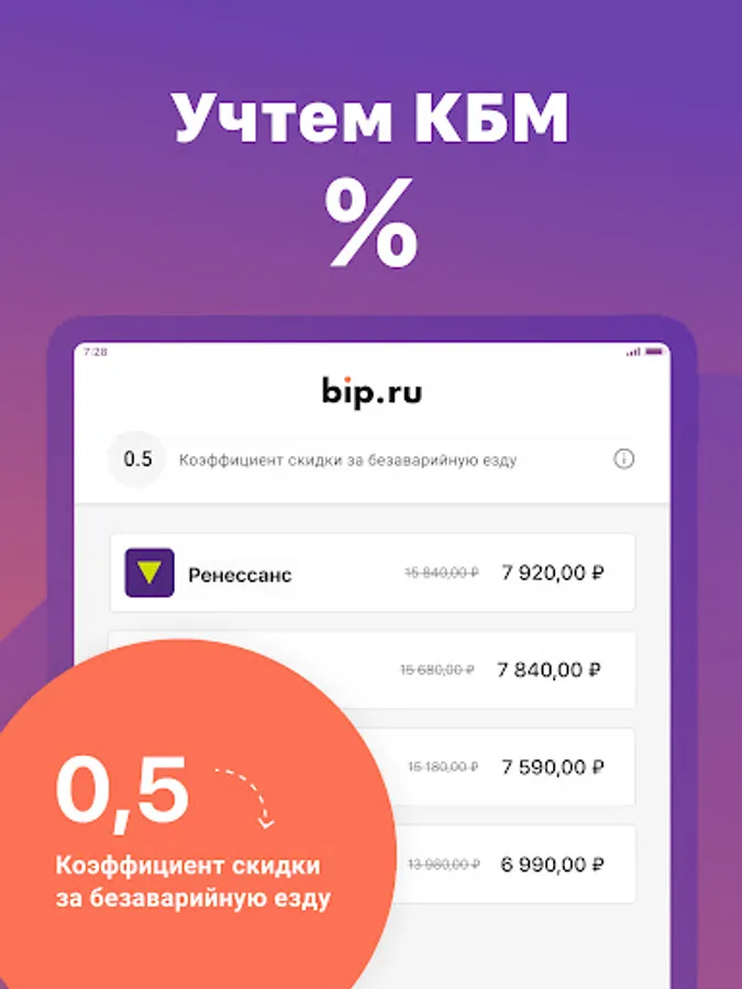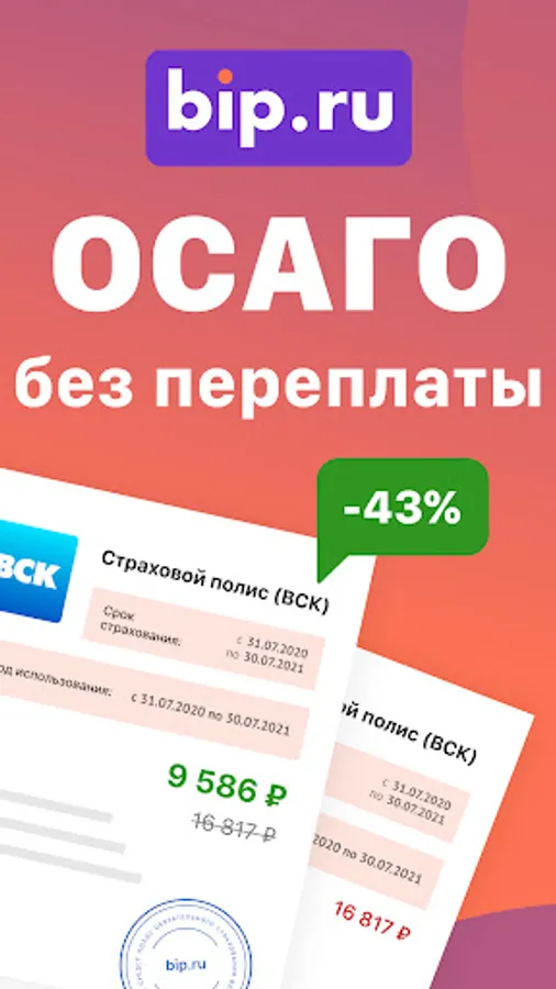Сравнивайте и покупайте полис ОСАГО по самой лучшей цене в приложении bip.ru!