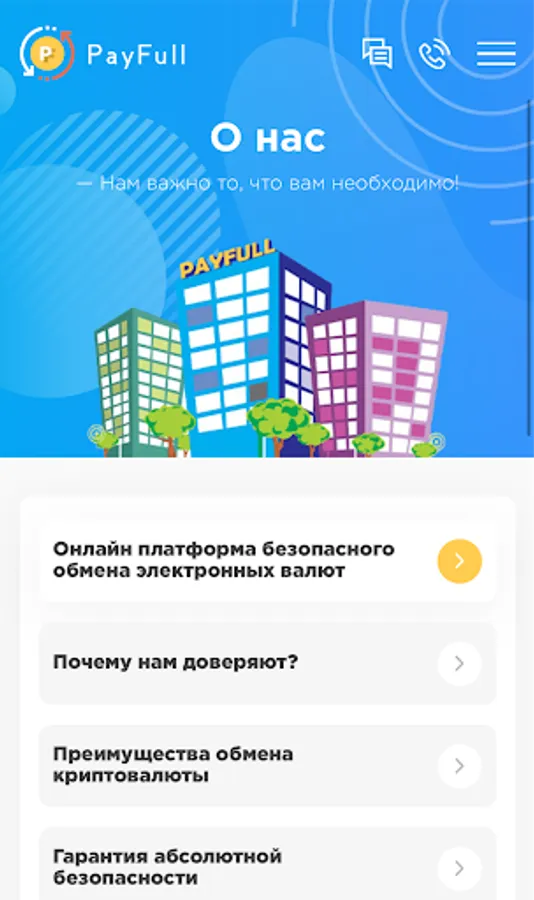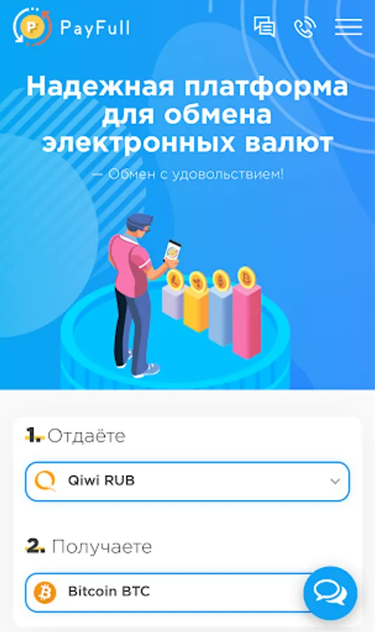The PayFull platform was created by a group of like-minded people to provide quality services for the exchange of electronic currencies in a format convenient for the client. We offer a single and simple exchange procedure. The exchange application requires a minimum of actions and information from the client, does not require registration, identification and takes no more than 1 minute of time.