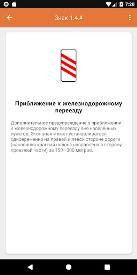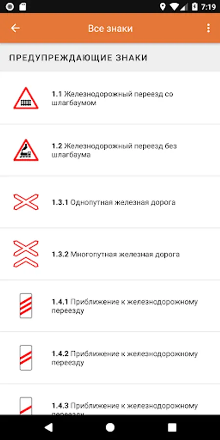 The application contains a complete list of road signs of the Russian Federation indicated in the traffic rules, with a detailed description of each of them, as well as 2 types of testing: a quiz and a "true or false". With it, you can not only refresh your knowledge, if you already have a driver’s license, but also pull up the topic of traffic signs, if you are just preparing to pass the exam in the traffic police.