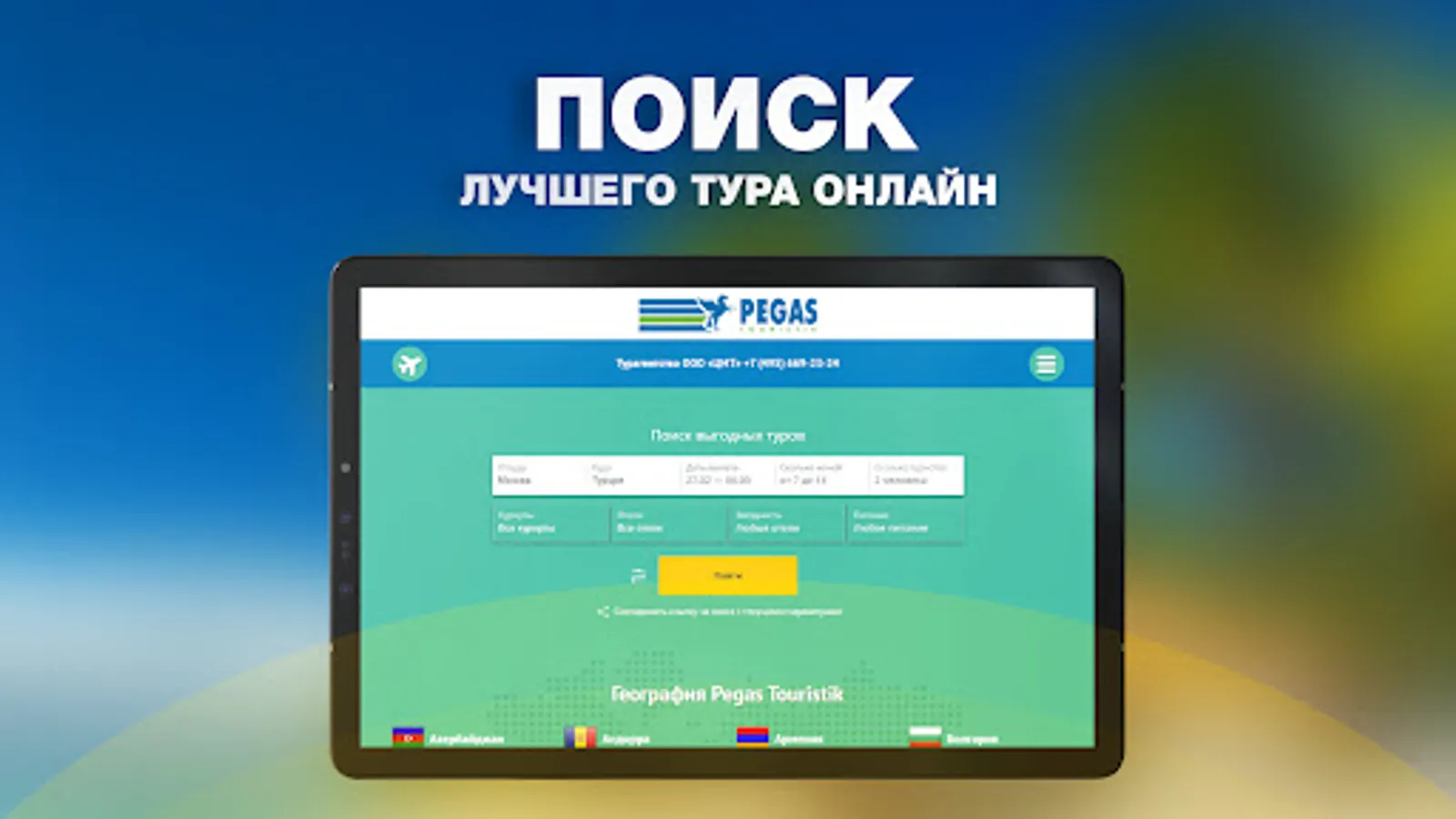 Tour operator Pegas Touristik - one of the recognized leaders in the tourism industry, modern and flexible approach to work which allows to select the most optimal offer for all client groups, covering all of the most popular destinations.