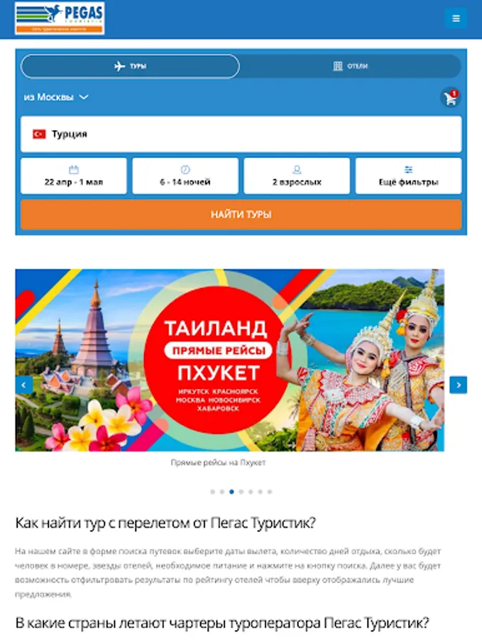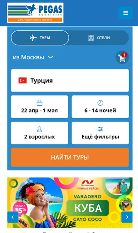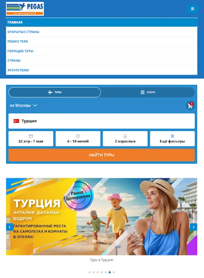Welcome to the world of convenient and intuitive travel agency application Pegas Touristik! We offer you a unique opportunity to plan and book tours directly from your smartphone or tablet.