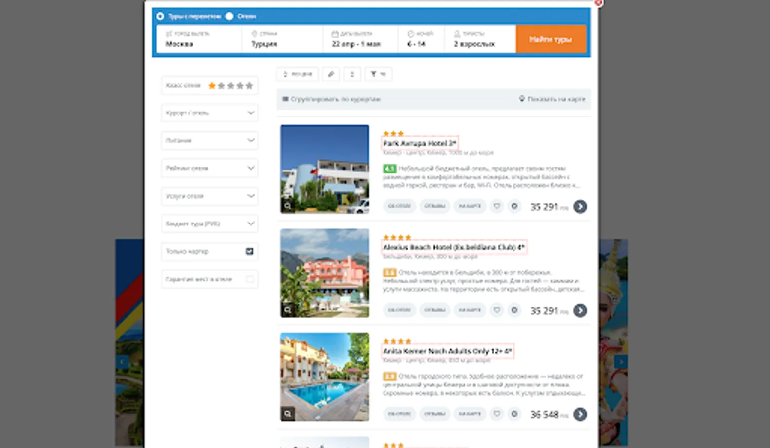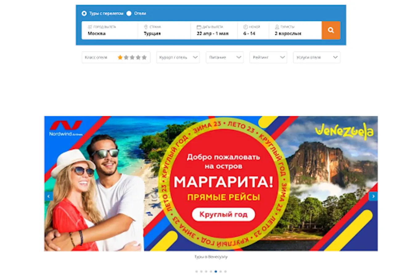One of the main advantages of our application is its simplicity and ease of use. Our interface is designed in such a way that even a novice user can easily find and book a tour with just a few clicks. You can choose a tour by countries, hotels, dates, budget and other parameters, as well as read detailed tour descriptions, photos and reviews of other travelers.
