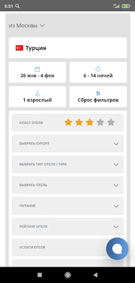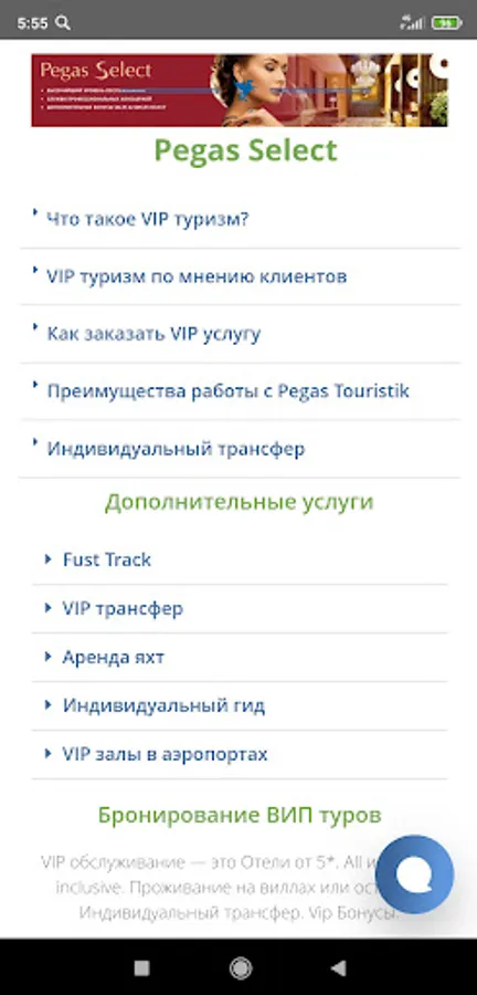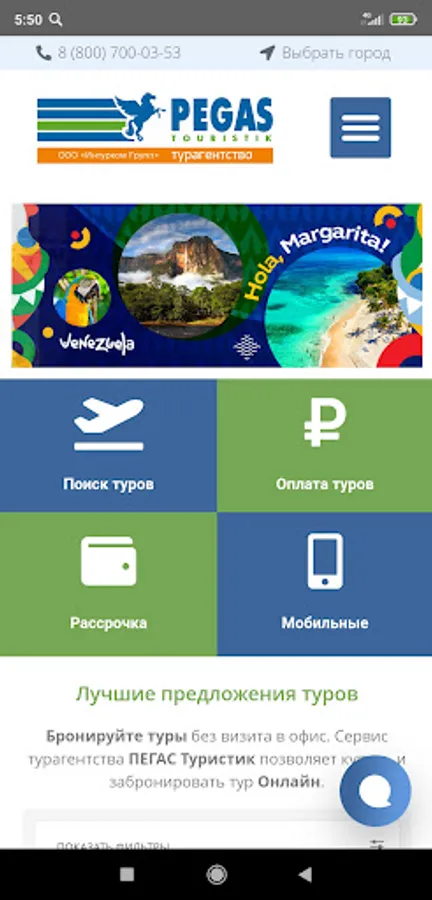 The free Mobile application of the travel agency PEGAS Touristik is a unique search for tours and ONLINE booking in two clicks. Purchase without registration. Payment by card or QR directly in the application. 0% commission for transfer via SBP.