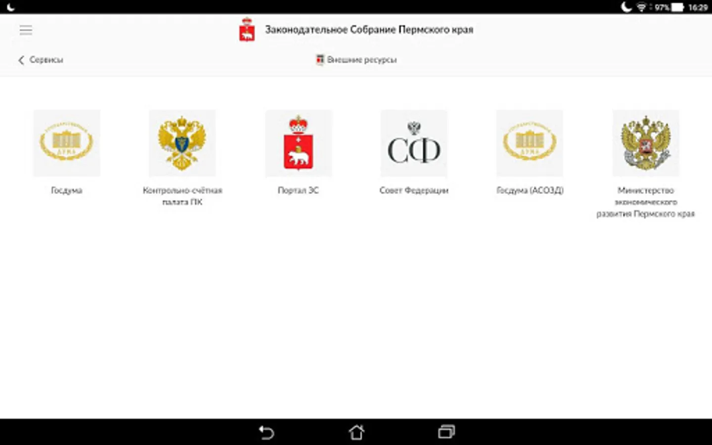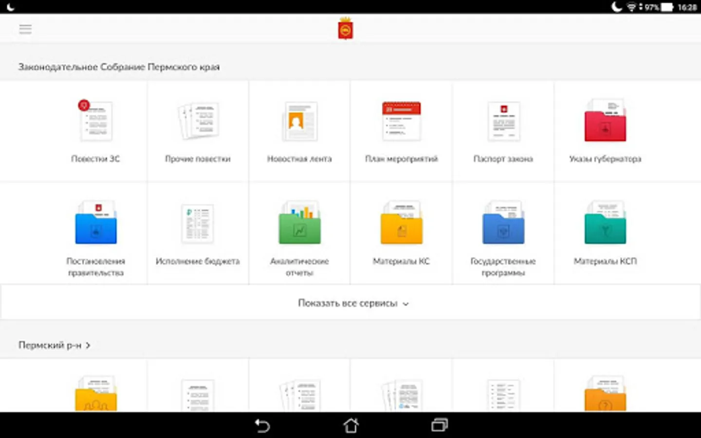 The Cabinet of the Deputy is an application for citizens, deputies of the Legislative Assembly and Zemsky Assemblies and City Councils of the Perm Territory, staff members, members of the Youth Parliament of the Legislative Assembly of the Perm Territory. The virtual office contains information and interactive services that make information more accessible and the rule-making process more efficient.