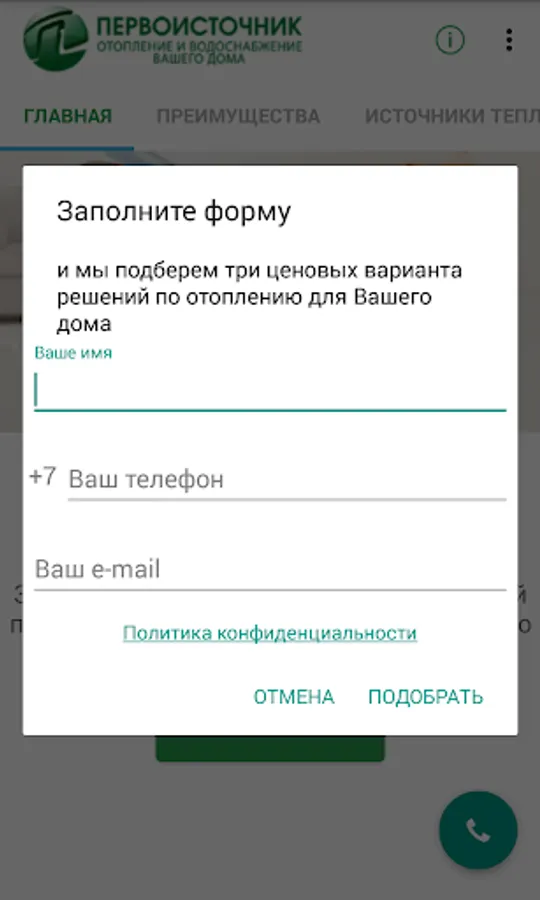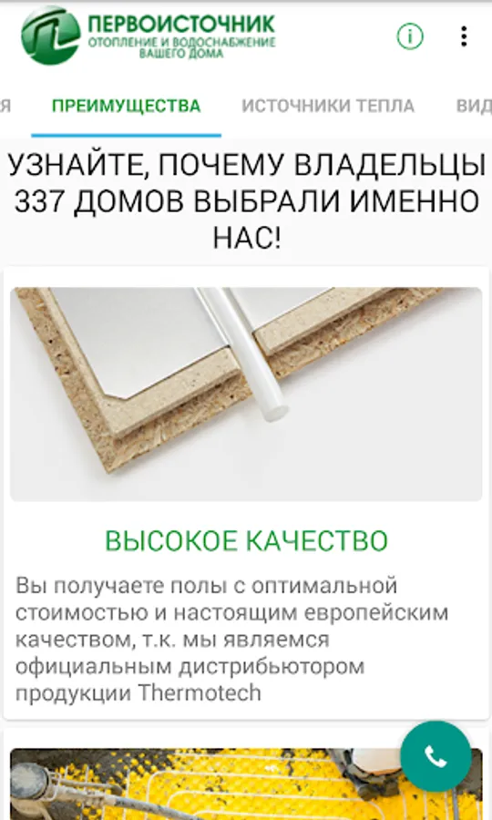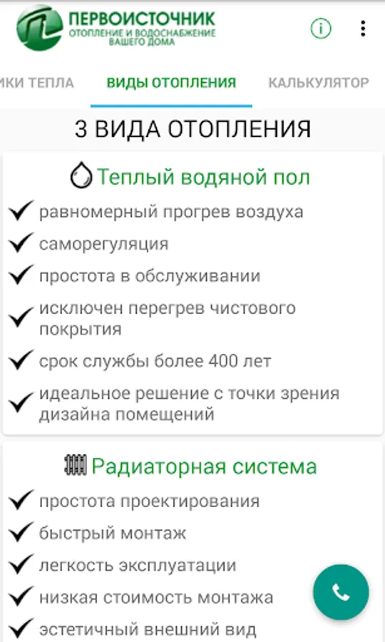 The application for the company's customers source. With the application, you can learn about the advantages of our company, get acquainted with the types of heat sources and heating, as well as rascchitat cost of heating your home.