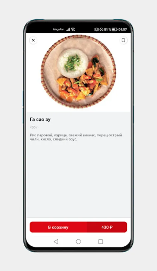 • Kom ranka with chicken on a rice and vegetable pillow;