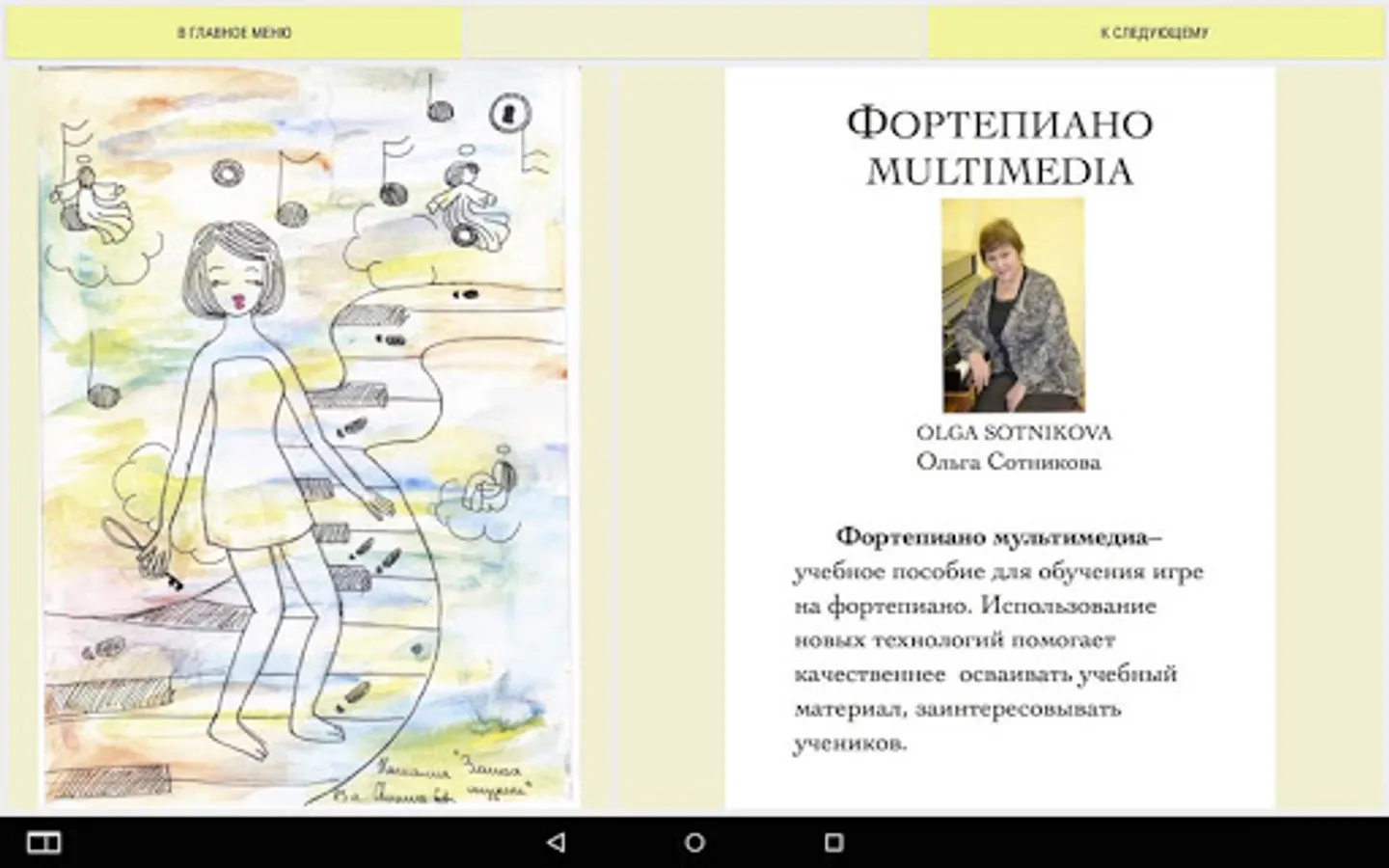 Textbook Multimedia Piano. Authors: Olga Sotnikova Elena Averyanov, Valentina Boyko. Drawings of pupils of art branch DSHI Krasnoselsky district of St. Petersburg.