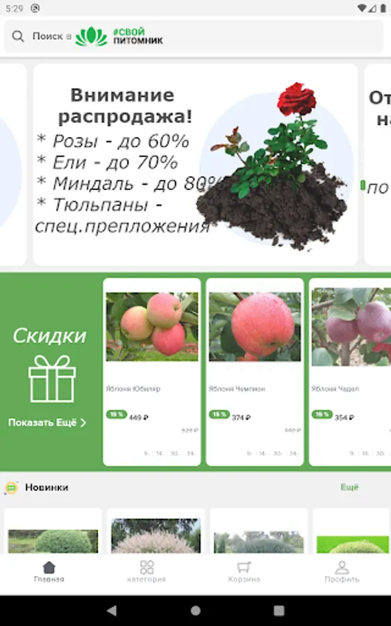 On the territory of the nursery, seedlings of roses, dahlias, gladioli, irises, lilies, daffodils and many other flowers are grown, as well as a variety of fruit and berry crops, ornamental, coniferous, potted plants. The assortment includes garden tools, and since 2019 - also the widest selection of seeds. All these products are presented in the company's online store and are supplied to customers not only in Russia, but also abroad. During the work our Nursery has taken a strong place in the Russian market of planting material. Here they use advanced climate equipment to maintain optimal humidity and temperature when growing plants and modern production lines for packaging seedlings for shipment to other cities. Thanks to this, the company is ready to vouch for the quality of its products and provides a guarantee for planting material for a period of 6 months. For producers of seedlings and seeds, such a long guarantee is a rarity.
