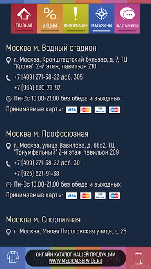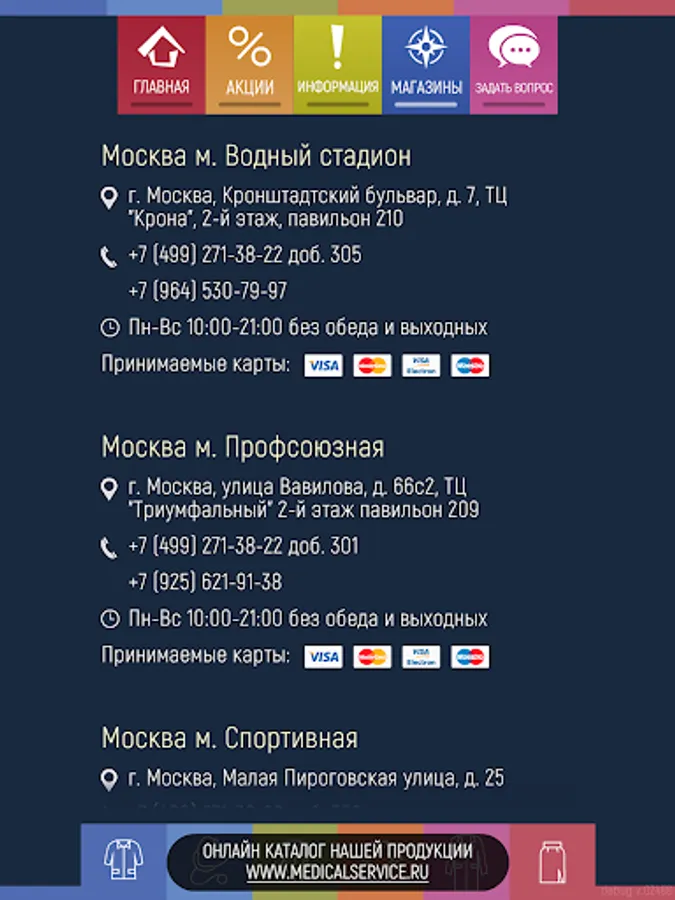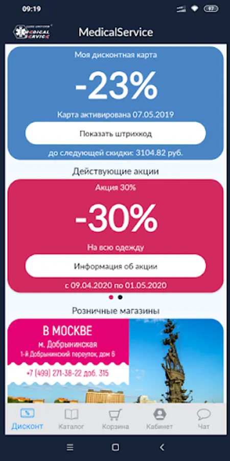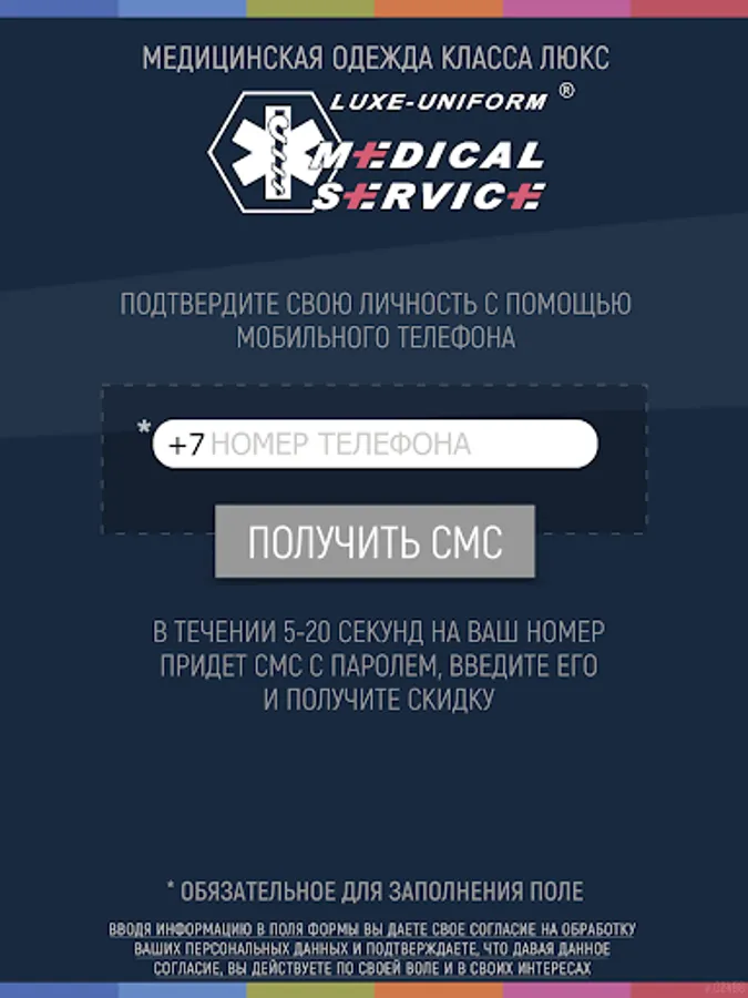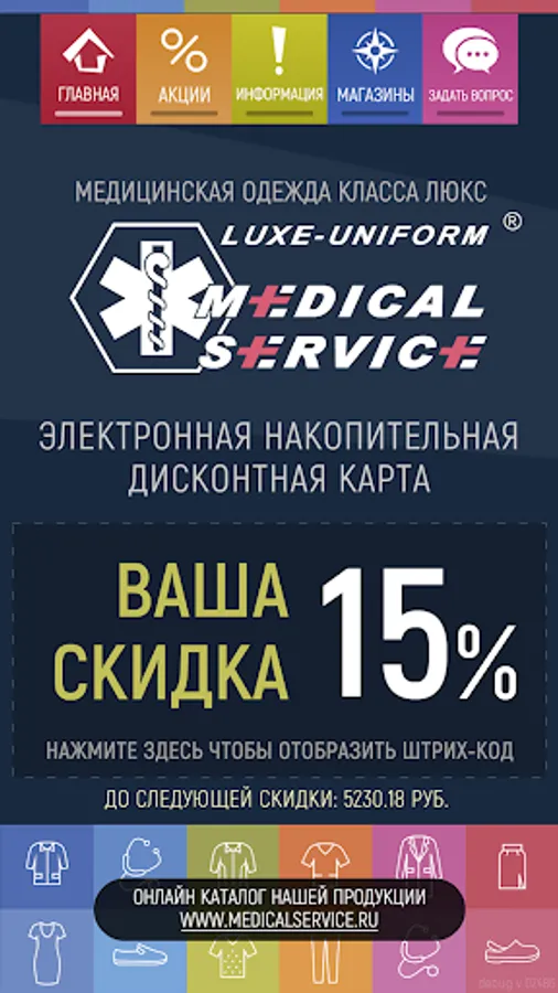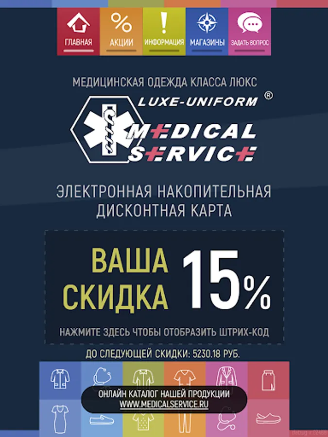This application provides an opportunity to get a discount when buying medical clothes in the network of MedicalService branded stores.