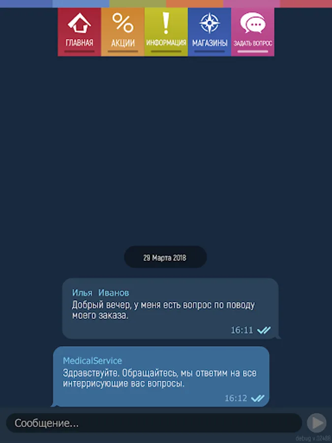 Your personal account in this application is tied to the phone number that you entered when you first entered the application, your account is also automatically linked to the account on the website www.medicalservice.ru (www.medsp.ru, www.medicalservice. ru, www.medicalserviceplus.ru)