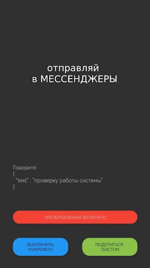 Translate your speech into text for further insertion of text into instant messengers or other applications. For example, driving is comfortable.