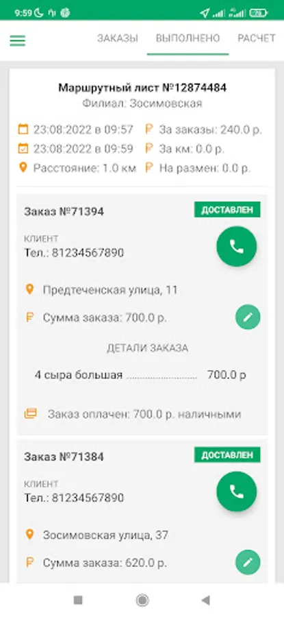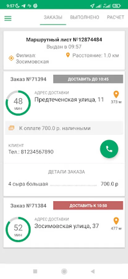 - Receive route sheets from the logistician with delivery addresses, time and order contents;