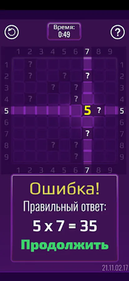 enter the results of multiplication of two numbers into open cells of the table instead of question marks