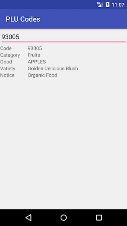 Application searches by 3ххх and 4ххх series of codes. It also detects GMO and Organic Food