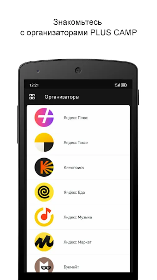 PLUS CAMP organizing services: Yandex Plus, Yandex Go, Kinopoisk, Yandex Food, Yandex Music, Yandex Market, Bookmate, Yandex Lavka, Yandex Afisha, Yandex Delivery, Scooters.