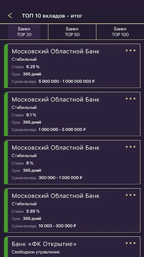 Algorithms will check the TOP-20, TOP-50, TOP-100 banks of the Russian Federation and show the 10 most profitable offers on deposits.