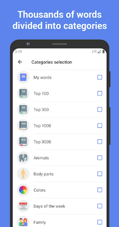 • Add your own words and categories easily: you can create your own word base you want to master first.