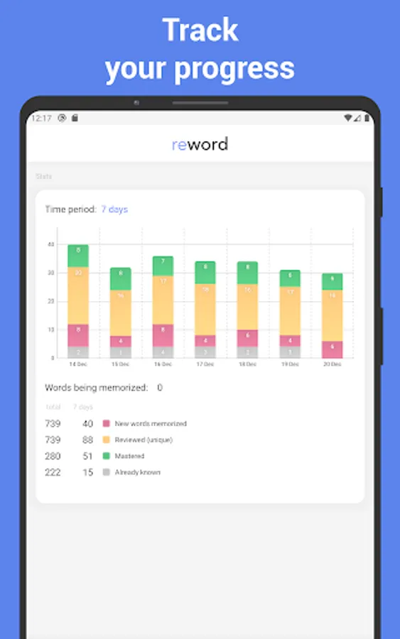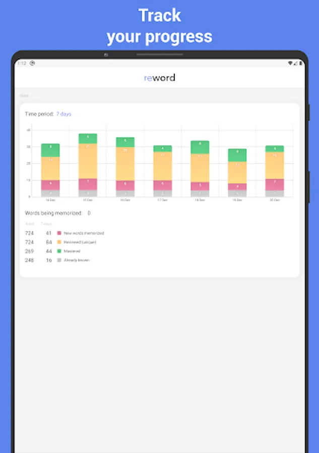 • Spaced repetitions really work: ReWord has a science-based approach to memorizing foreign words so you can learn languages at the highest efficiency.