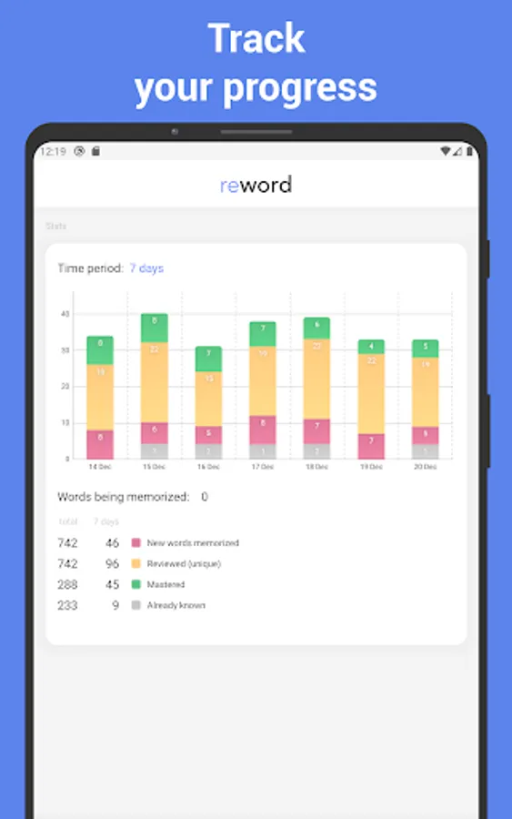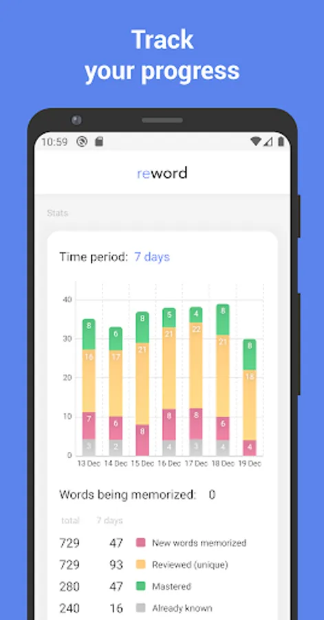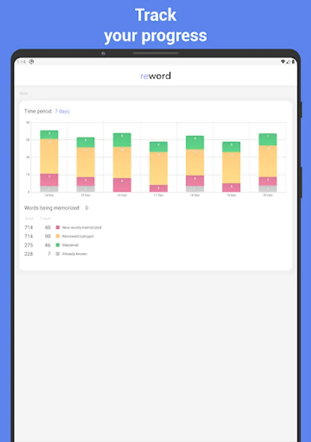 • Spaced repetitions really work: ReWord has a science-based approach to memorizing foreign words so you can learn languages at the highest efficiency.