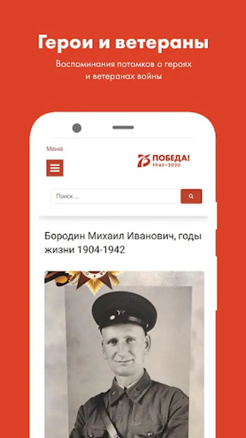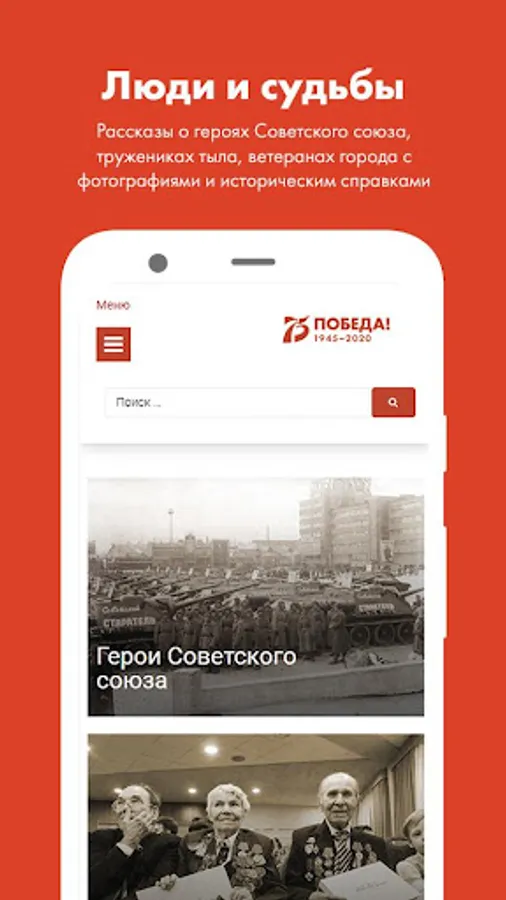 The application tells the stories of life and exploits of 64 heroes of the Soviet