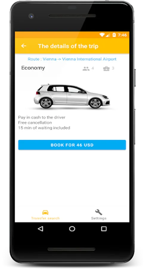 The application allows you to find the most suitable transfer almost anywhere in the world.
