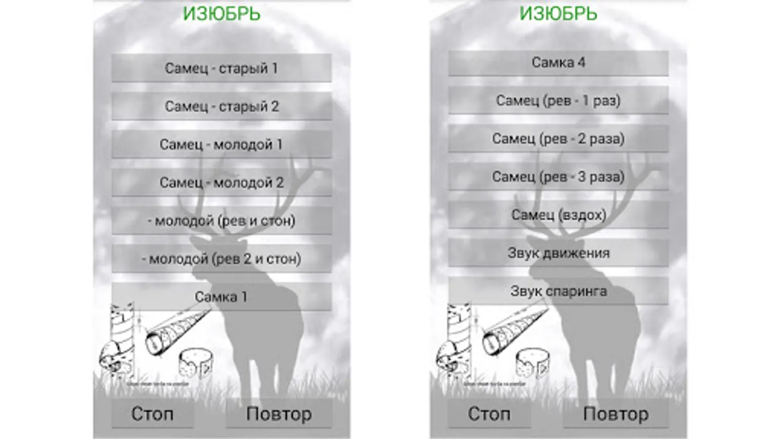 This appendix presents the voices of IZYUBRA and other sounds that can be heard during the rutting period of these animals (at a roar).