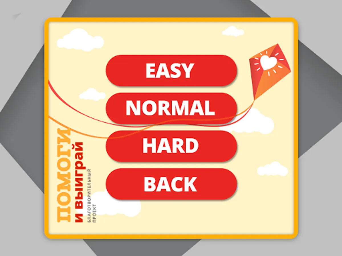 In this application, the participants of the project "Help and Win" can play Sudoku. Sudoku automatically generated, it is possible to pass both the classic 9x9 Sudoku and try his hand at a more sophisticated version of 1616. The challenge is selected by the participant before the start of the game. The game has a convenient timer for the reference elapsed time after the game participant receives a report elapsed time information and the number of points obtained by the project, which is automatically added to his personal rating.