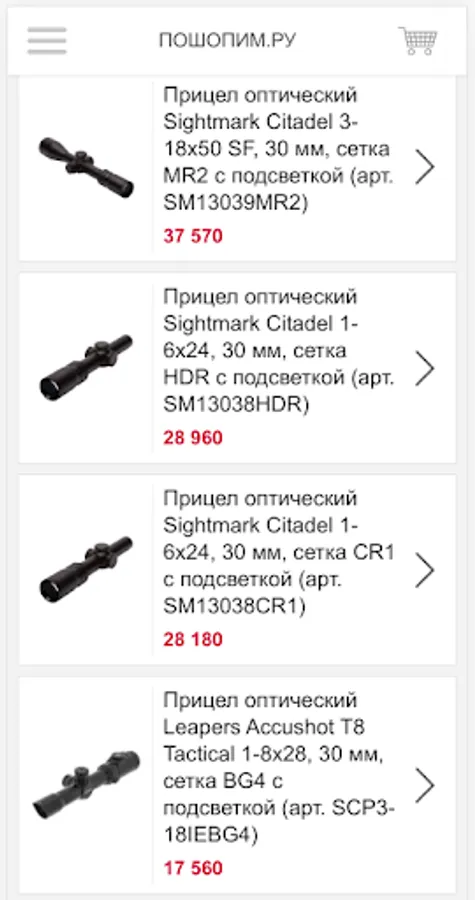 The application of the online store Poshopim