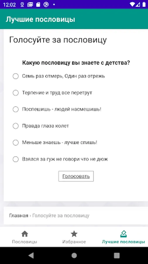 All found proverbs can be added to Favorites. To do this, click on the star ⭐ in the upper right corner when viewing the explanation of proverbs.