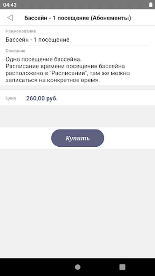 The application allows you to track the status of your personal account, control the availability of purchased services and their use, sign up for a lesson and purchase the services of the Neftyanik Sports and Health Complex.