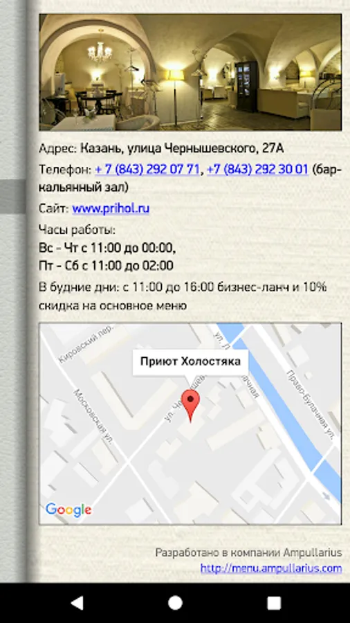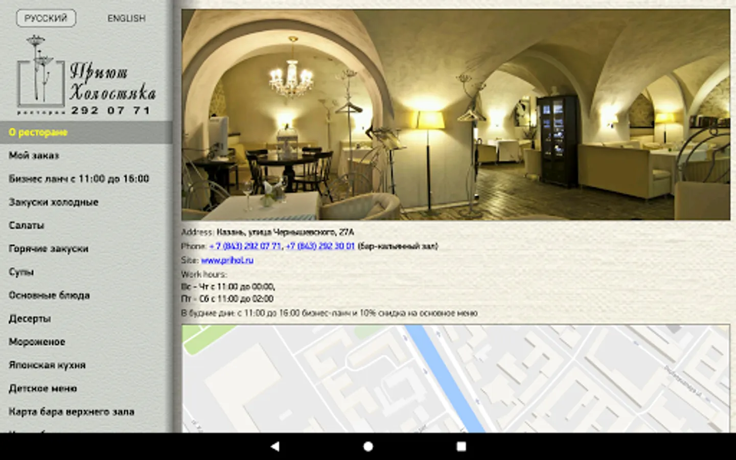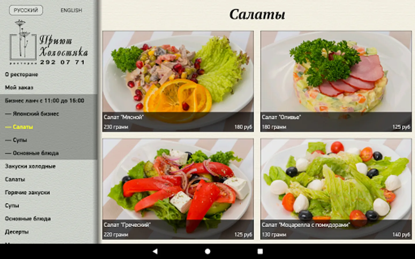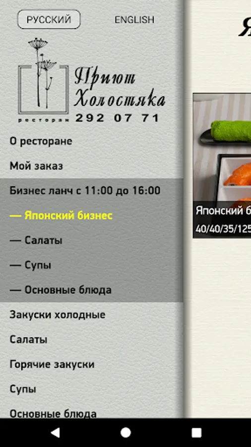 We offer you a menu of the restaurant "Shelter Bach", realized in the form of application.