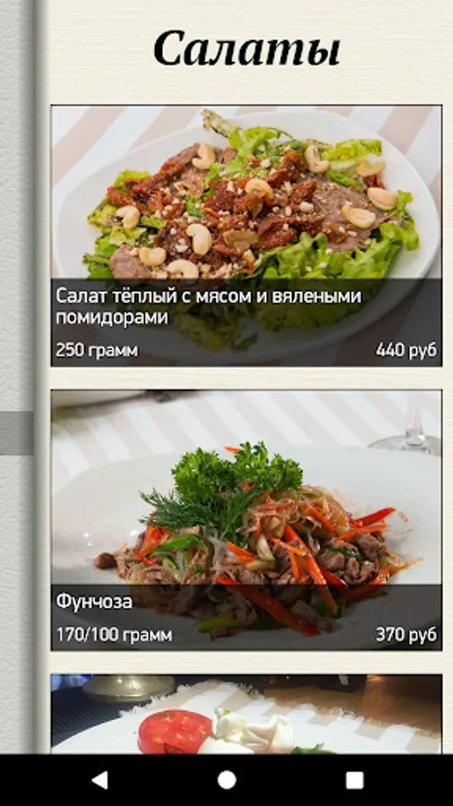 Always the most current restaurant menu, with colorful photographs of each dish.