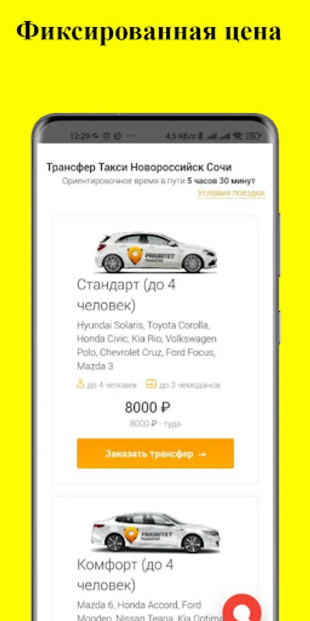 "Standard" - cars such as Kia Rio, Hyundai Solaris, Volkswagen Polo, etc. (option "air conditioning" is already included in the tariff).