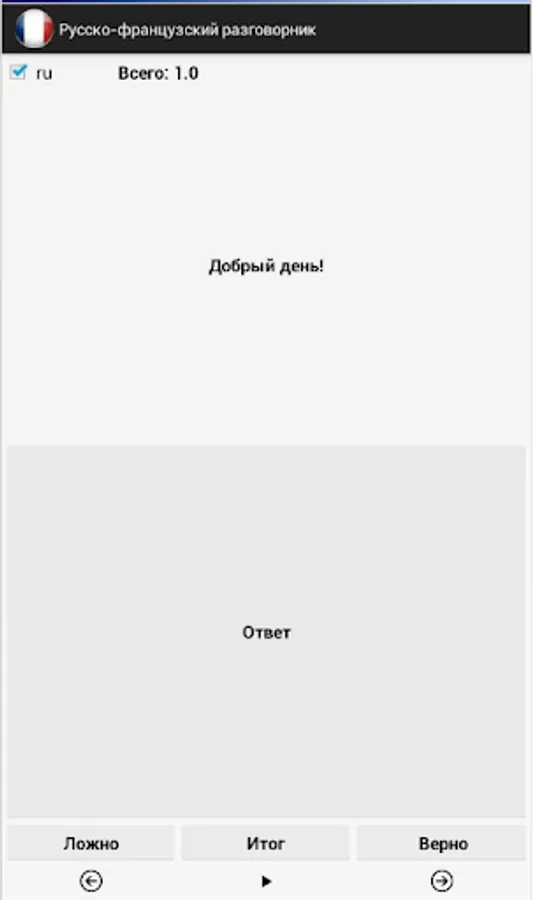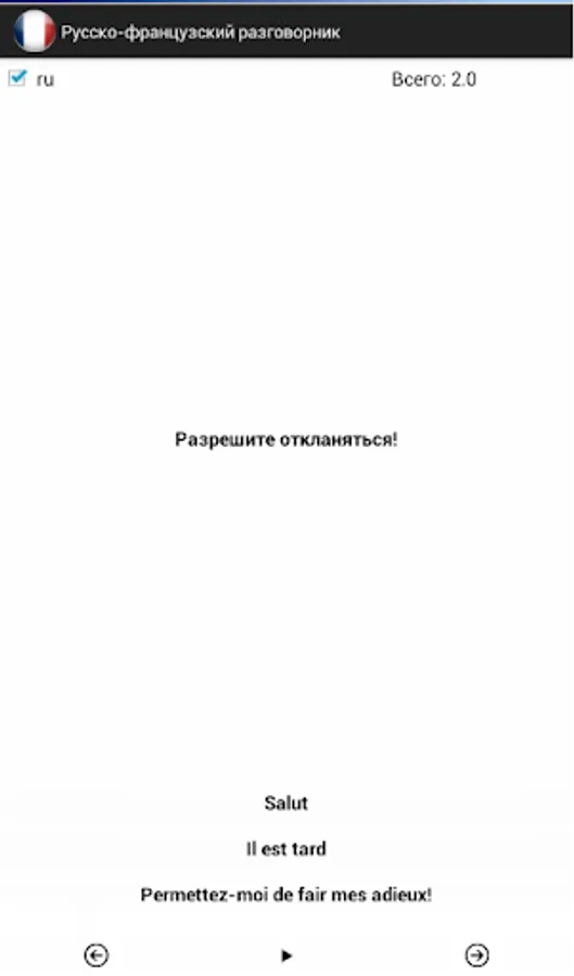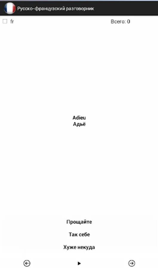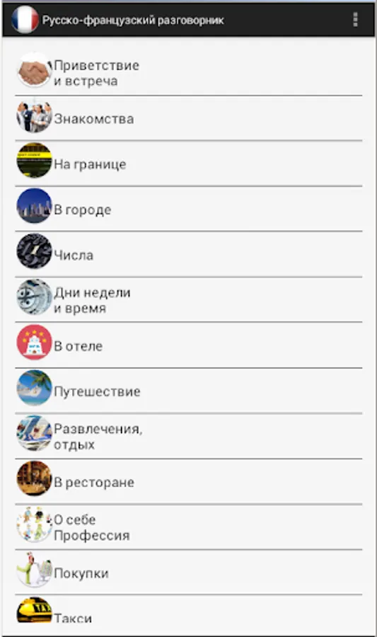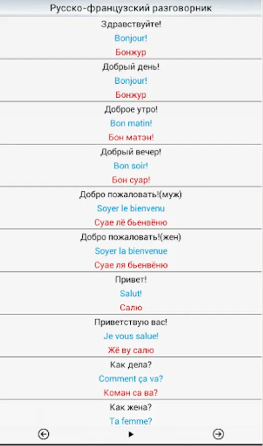It’s true that anyone can speak another language.Russian French phrasebook helps you interact with people who know French language. With over 1000 spoken and phonetically written phrases you can easily speak and understand the local people. Our program also has two language quizzes that help you learn phrases in a fun way.