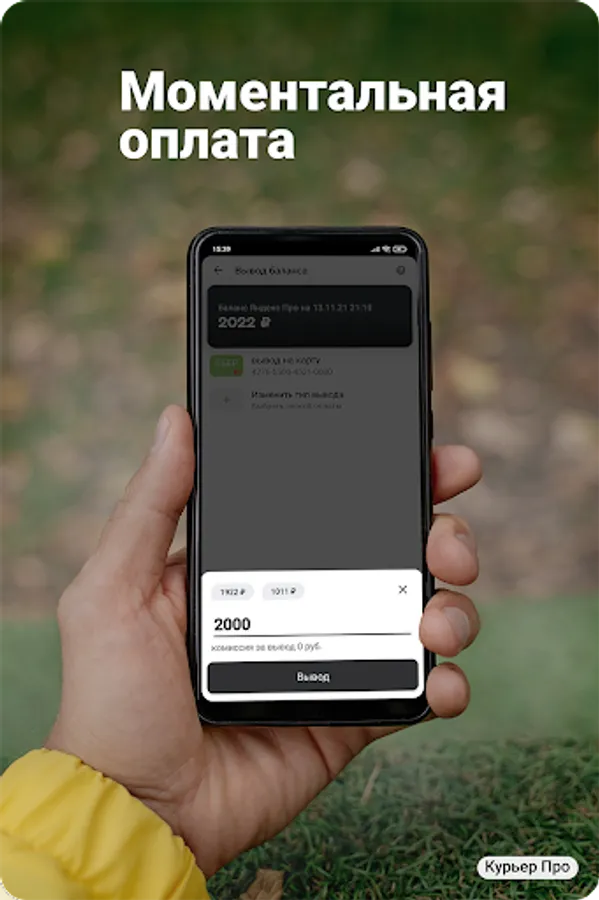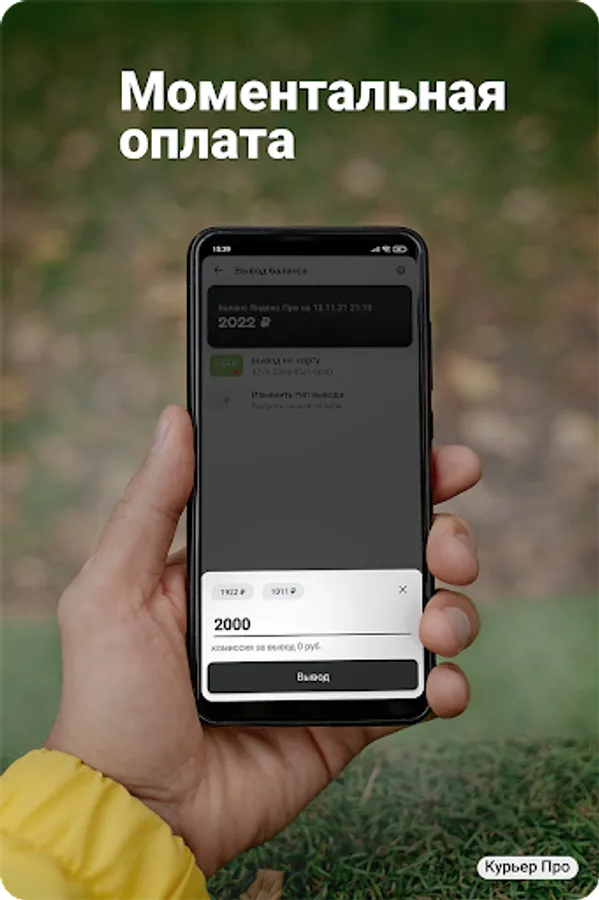 Instant - round-the-clock payments of the courier balance to your wallet or bank card through the Courier Pro application *