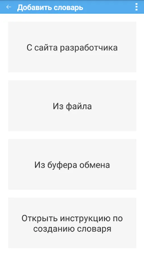 Importantly, each user has the opportunity to create their own dictionaries and tests on topics of interest to him personally and add them to the application. Or use the download of additional dictionaries from the public database on the developer's site.