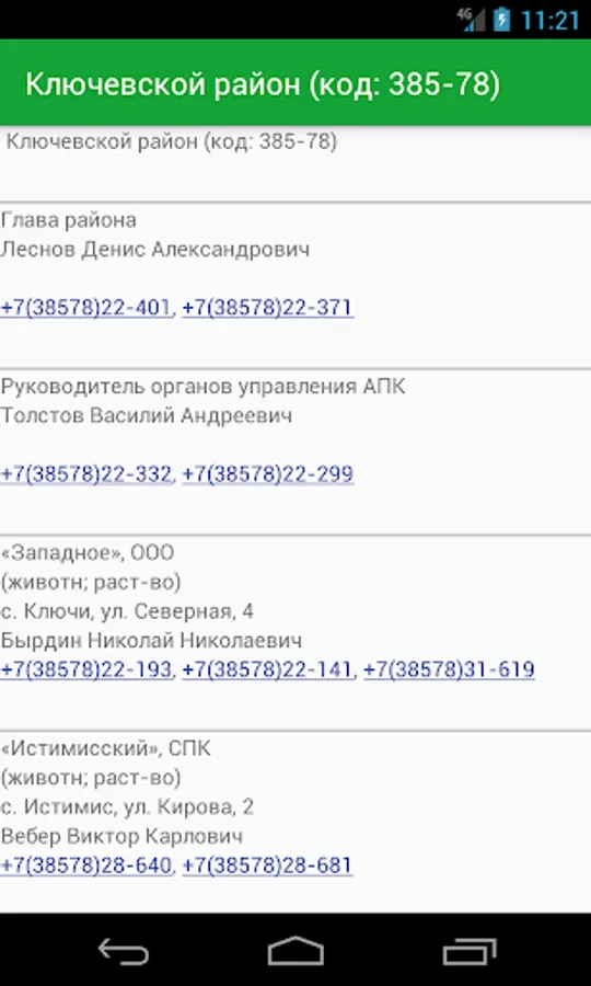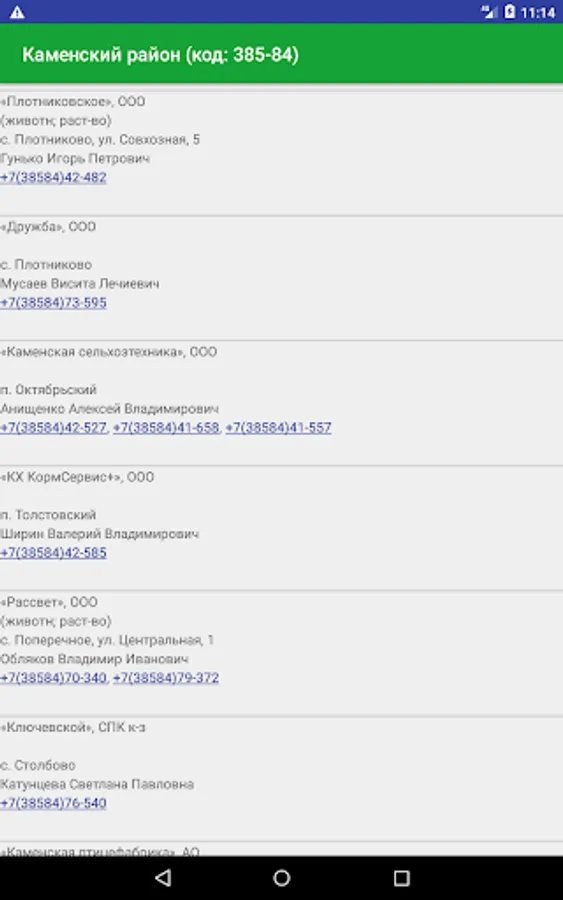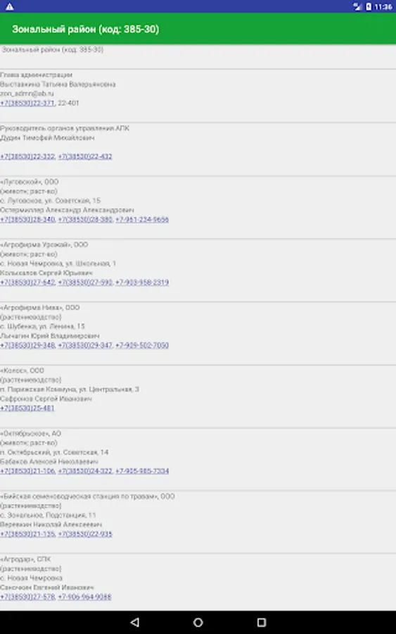 The data in the edition distributed in areas of the Altai Territory. Next to the name of the organization there is a postscript to the activity (such as crop or livestock, or more detailed description)