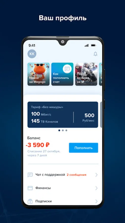 • replenish your personal account in two clicks;