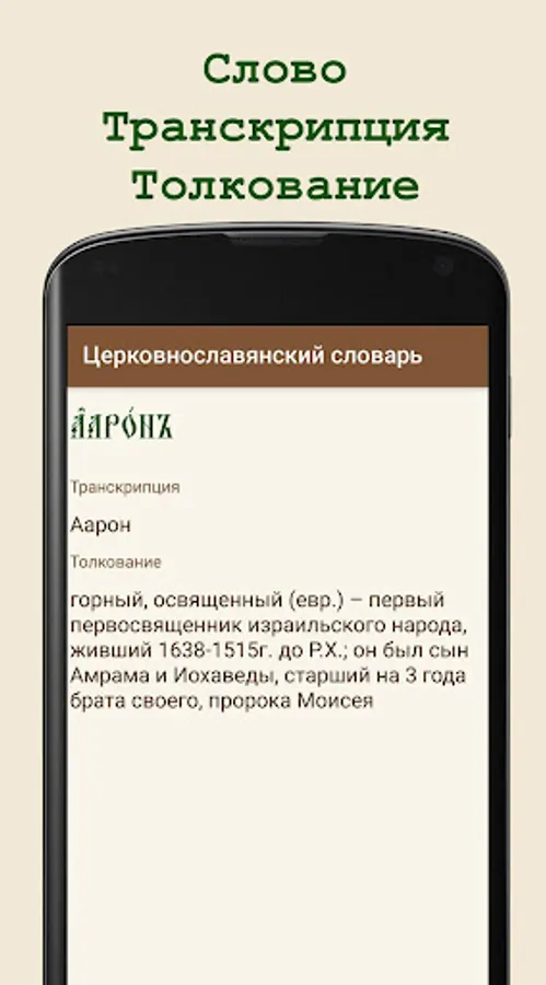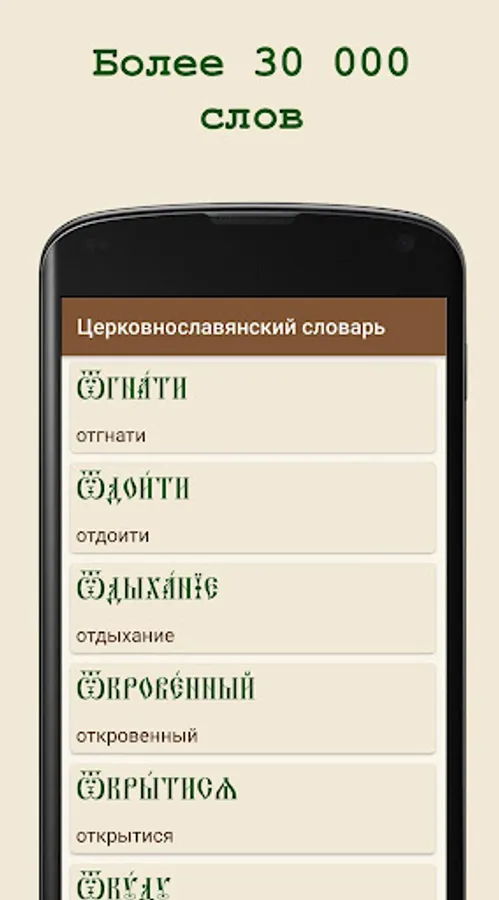 Convenient search for translation of Church Slavonic and Old Russian words.