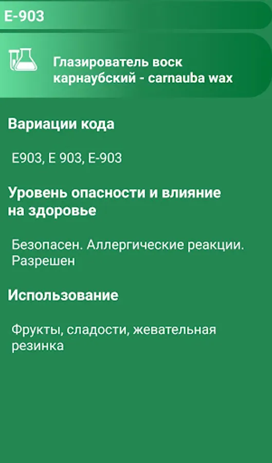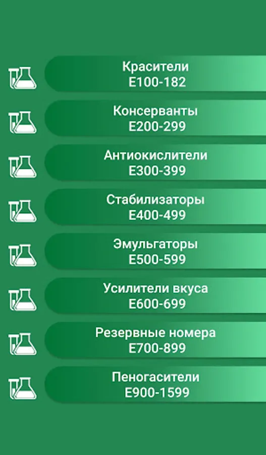 Appendix E contains a list of nutritional supplements in order to quickly and conveniently view information about harmful substances added to food.