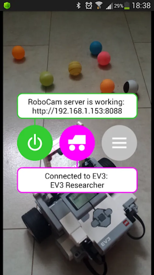 If you have a home kit of LEGO Mindstorms EV3 (31313) or you want to control other EV3 robot instead of Researcher EV3, you need to set up RoboCam app. See RoboCam settings.