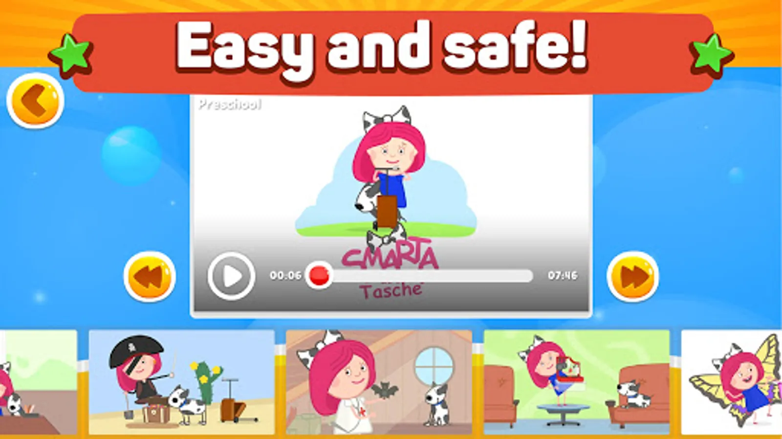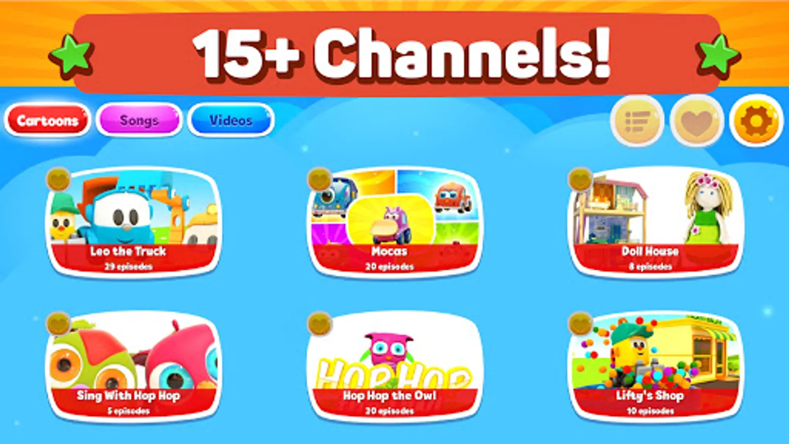 We have educational cartoons for toddlers (both boys and girls), cartoon series, and a multitude of various shows for little kids from 2 to 5 years old, like famous “Leo the Truck”, “Dr McWheelie” and others. Favorite characters and online kids cartoons are now on your smartphone!
