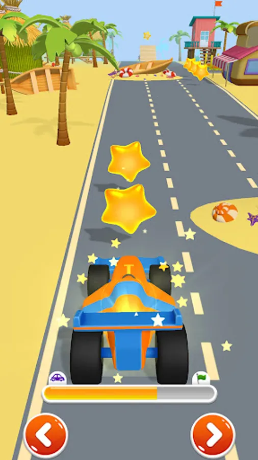 Our toddler games consist of sequential steps. The kid drives cars - they drive along the tracks, divided into three lanes, and collect parts of objects (other cars, objects) and other resources. Your kid will gain new skills and a lot of positive emotions with the help of these car games for kids, because it is impossible to make a mistake or lose!