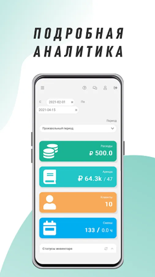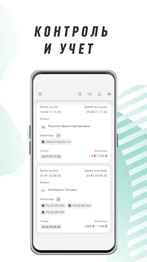 The Rent in Hand application is designed to automate the rental and lease of any inventory. The service "Rent in Hand" was created specifically for administrators and owners of points of hire and lease of any inventory. The service automates the accounting of goods issued by customers, maintains a history of payments and settlements, generating all the necessary reports for the manager.